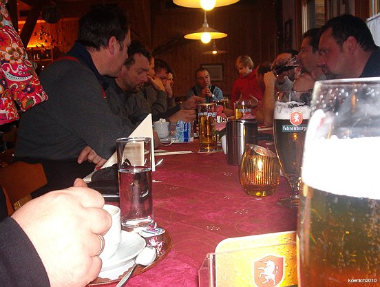 Die Ausfahrt führte diesmal über wunderschöne verschneite Strässchen durch Wälder und über Hügel zum Ried-Stüble in Möggers. Im Riedstüble dann was zu Trinken und ein feines Mittagessen, Prost, Mahlzeit