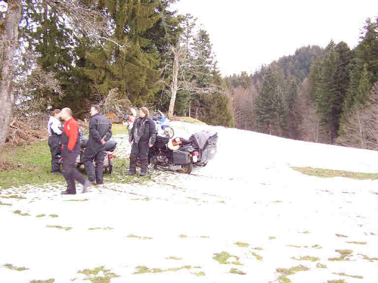 Am Freitag Nachmittag ging es los. Die Ersten die den Treffenplatz gefunden haben waren jene die die weiteste Anreise hatten. Andreas a.d.k.G, aus Aschaffenburg und Uwe, alias Koenich, aus Frankfurt ... und wo ist denn der versprochene Schneee ?? naja, ein bisschen ist zumindest noch da..... Nach und nach füllte sich der Zeltplatz, gegen 21 Uhr trafen die letzten Teilnehmer ein. Insgesamt waren 17 Teilnehmer aus Österreich, Deutschland und der Schweiz auf dem Treffen. Sind sie nicht schön, die Emmen ? und die weiteste Anreise hatte Andreas a.d.k.G.