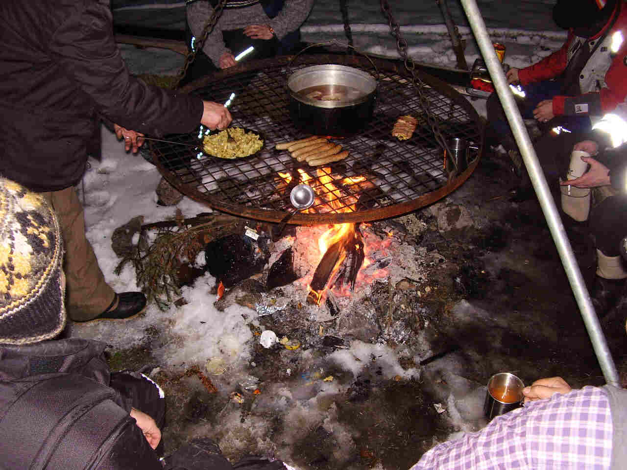 Gemütlich den Abend bei einem schönen Feuerchen, Glühmost, Nudeln, Würsten und ein paar Sprüchen ausklingen lassen.