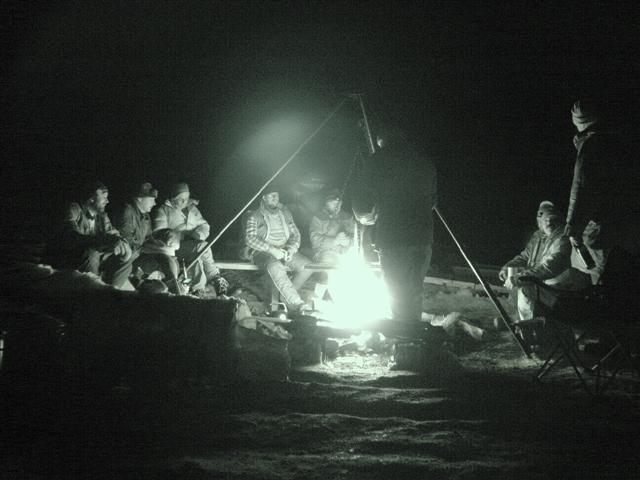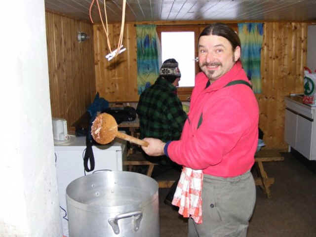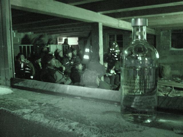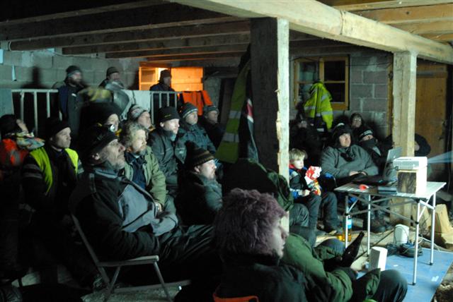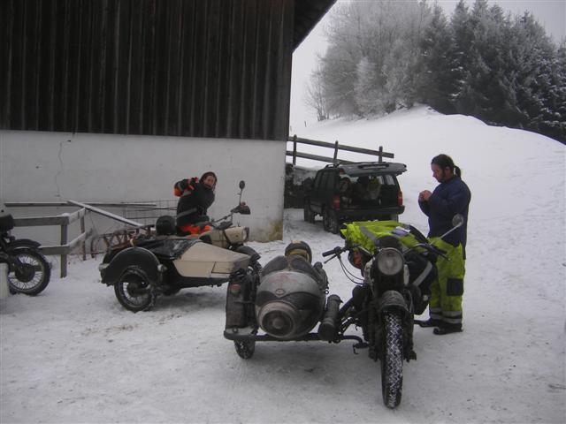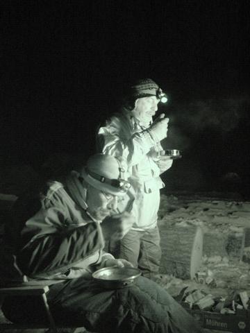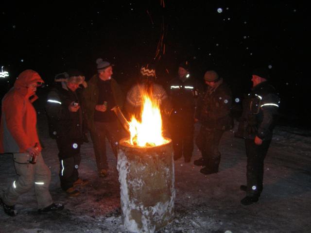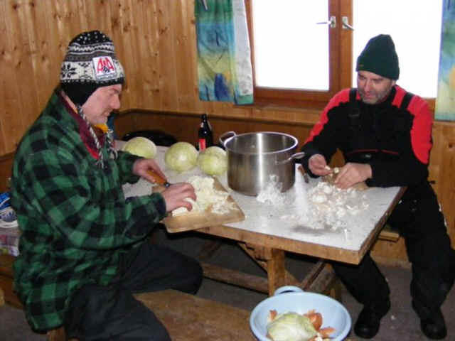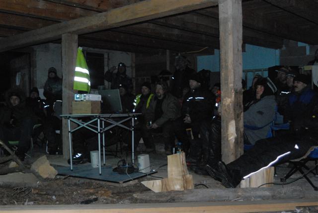 mmhhhh, lecker ..... Danke an Uwe und seine Küchenschaben, ähh Gehilfen für die wunderbare Krautpfanne ! Nach dem Essen schnell aufräumen, die nächste Attraktion wartet bereits. Beamer und Leinwand sind im "Stall" aufgebaut. Heidi und Martin bringen uns Ihren Film - Ein Wodka in Murmansk - mit. Den sehen wir uns an. Der Film ist für uns Winterfahrer echt sehenswert! Und ich war nicht der einzige der von dem Film fasziniert war, eine Stunde lang keinen Mucks aus dem Publikum, das hat was. Naja, die Murmanske Wodkaflasche, die Chips und Schokolade wurden rumgereicht, wie im echten Kino.