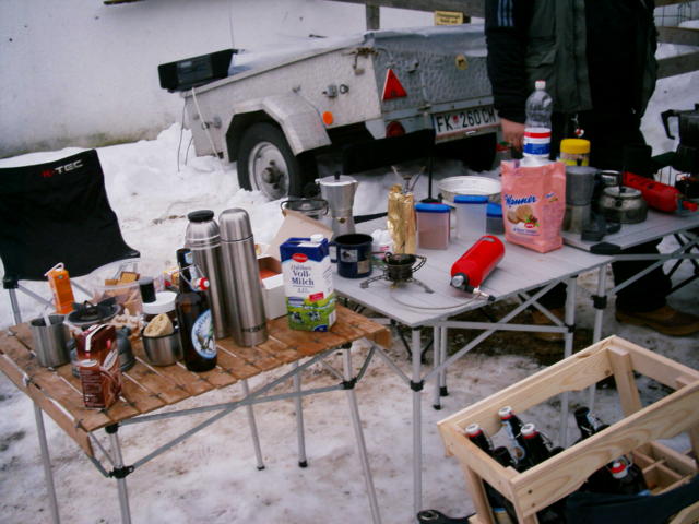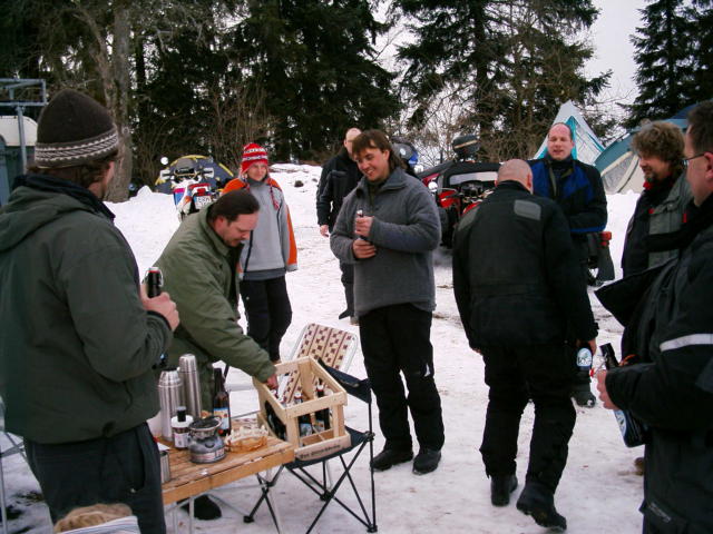 Zum ersten Mal gibt es heuer auch Treffenaufkleber, Danke an Faxe Sonntag Vormittag regnet es. Nach dem Frühstück werden die nassen Zelte abgebaut, aufgepackt und es geht auf die Heimreise, einige haben noch einen langen Weg vor sich Dieses Jahr waren 19 Teilnehmer und einige Tagesgäste dabei. Ich finde es war wieder ein tolles Treffen mit tollen Leuten und gutem Winter-Wetter, wenngleich es einigen ein wenig zu warm war. Einen guten Bericht vom Treffen gibt es auf der Seite von Andreas Wir bedanken uns bei den allen Teilnehmern für Euer Kommen, denn durch Euch ist diese kleine Treffen so toll wie es eben ist. Speziellen Dank an Faxe, Martin, Stephan, Rainer, an die Pfadigruppe Rankweil und an den Grundbesitzer. Den Platz und das Haus haben wir für nächstes Jahr bereits gebucht, es gibt also auch ein: 3.