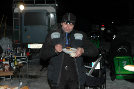 Samstag Abend Es sind noch ein paar Nachzügler und Gäste eingetroffen. Dann wird gekocht, Chilli für Alle. Den Teilnehmern schmeckts und es wird wieder ein gemütlicher Abend. Essenausgabe ... scharf oder heiss ? oder beides ?